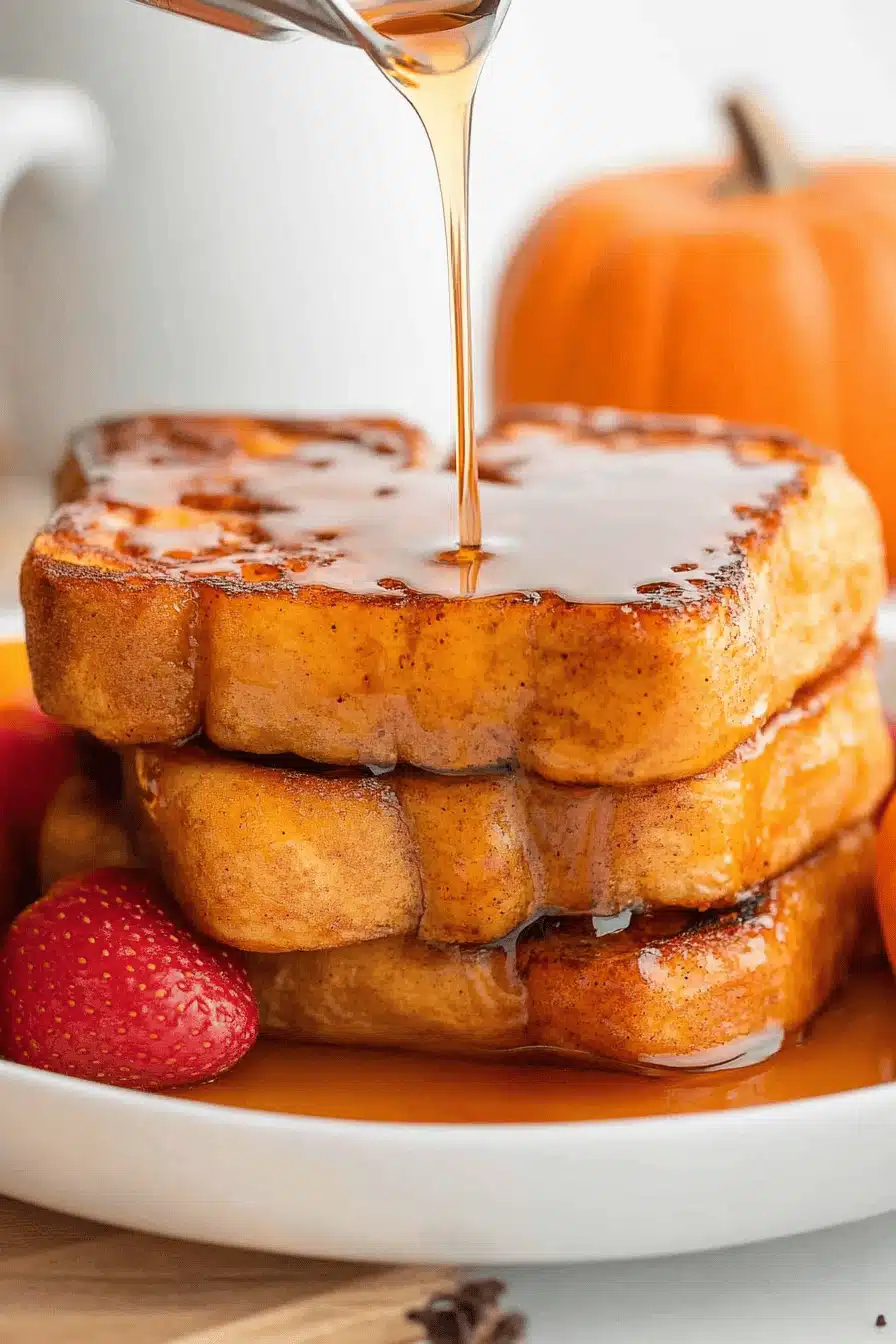 Start with thick-sliced bread like brioche or Texas toast for the best structure. Use canned pumpkin puree, not pumpkin pie filling, to control the sugar and spice levels. A mix of cinnamon, nutmeg, and allspice will bring out the characteristic Pumpkin Spice taste. Feel free to use any milk you prefer—dairy or non-dairy works well!