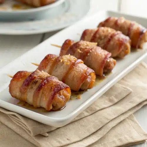Another reason I love them? Customizability. Swap in turkey bacon for a leaner option, add cheese inside the wrap for melty goodness, or toss them in BBQ sauce halfway through baking for extra sweetness. Even kiddos who claim to hate chicken will devour these—the bacon does most of the convincing work! And since they’re bite-sized, no one needs a fork. Just grab, eat, repeat.