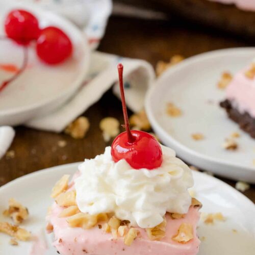 - Top with whipped cream, chopped walnuts, and a cherry if desired. Slice into squares and serve.