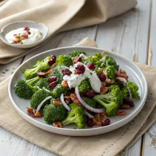 If you love a crisp, refreshing side dish that’s as vibrant on the plate as it is in your mouth, this broccoli salad recipe is about to become your new favorite. It’s not just a salad—it’s a celebration of crunch, tang, and sweet-savory balance. Whether you’re packing a picnic basket, prepping for a potluck, or simply craving something healthy and satisfying, this broccoli salad delivers every time. I first made this at a family gathering years ago, and it vanished in minutes. Since then, it’s been requested at every summer BBQ and holiday meal.