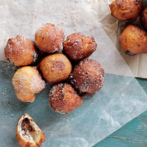 Eat them fresh for the best texture, but if you must save some, store cooled donut holes in an airtight container at room temperature for up to 2 days. They won’t stay crispy, but the inside will still be soft.