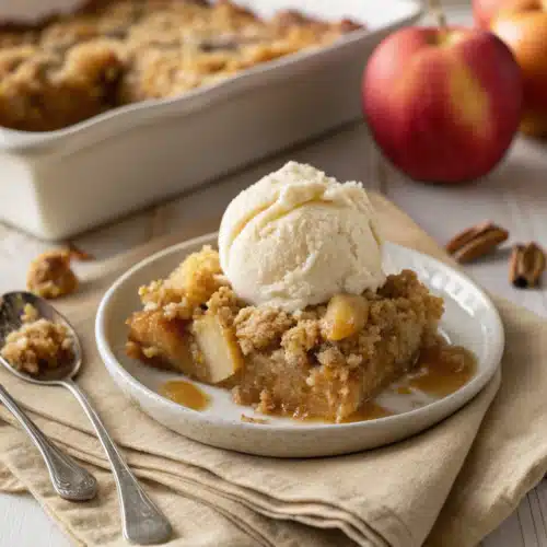 Another reason this recipe wins? It’s customizable. Swap out Granny Smith apples for Honeycrisp if you prefer a sweeter bite, or use different cake flavors like yellow or spice mix. You can even add a handful of chopped nuts or a sprinkle of oats before baking for extra texture. And don’t even get me started on that caramel drizzle—it turns every bite into pure bliss.