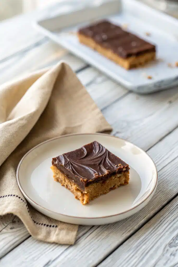 This recipe comes together in under 20 minutes of active prep, then chills in the fridge for about an hour to set. You’ll mix a simple peanut butter-oat base, press it into a pan, top it with a smooth chocolate layer, and let it firm up before slicing. No special equipment needed—just a bowl, spoon, and an 8×8-inch baking dish.