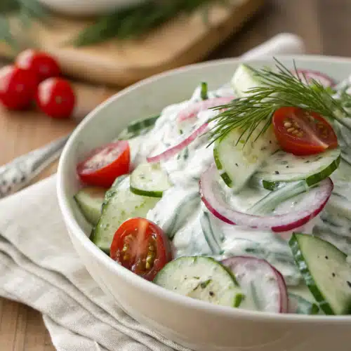 There’s something so refreshingly simple about a bowl of creamy cucumber salad, isn’t there? It’s one of those dishes that feels like a cool drink on a hot day—light, zesty, and just packed with summer flavor. I first discovered this recipe at my grandmother’s house, where it was always served alongside grilled meats or as part of a big family picnic spread. The first time I tasted it, I was hooked: the crunch of fresh cucumbers balanced perfectly by a rich, tangy dressing that somehow tasted like sunshine in a bowl. Over the years, I’ve tweaked it just a little—adding a touch more dill here, maybe a splash of lemon there—but the essence has stayed true: this is comfort food at its most elegant.