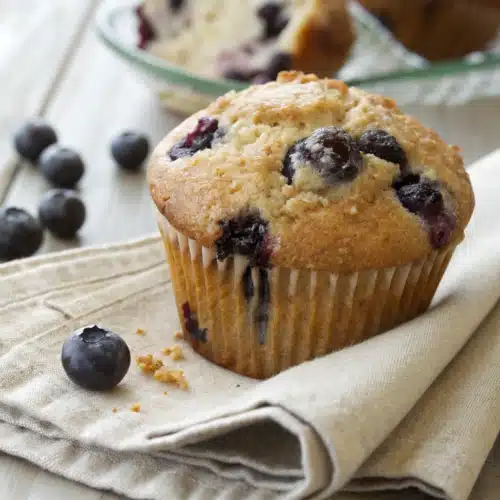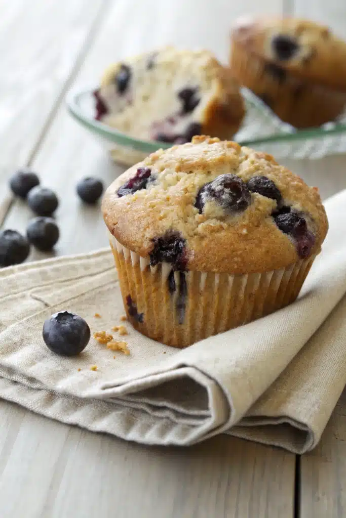 Use room-temperature ingredients—they blend more smoothly and help the muffins rise evenly. Don’t skip tossing the blueberries in flour; it really does keep them suspended in the batter. If using frozen blueberries, don’t thaw them—just toss and fold in frozen to avoid purple batter. For extra flavor, add 1 tsp of lemon zest to the batter or a pinch of cinnamon. And finally, resist the urge to open the oven door too early—it can cause the muffins to collapse!