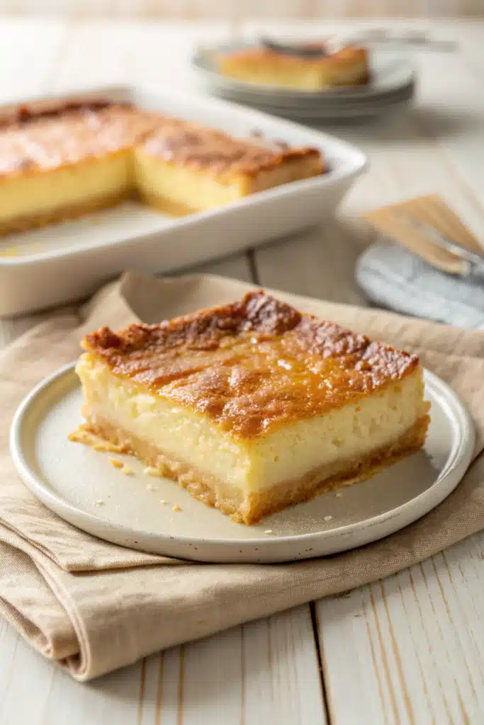 This cake comes together quickly with just a few simple steps: mix the batter, pour it into a pan, bake until golden, then cool slightly before slicing. The magic happens during the last few minutes of baking, when the edges firm up and the center stays wonderfully soft and gooey. Total time is under two hours, including prep and cooling.