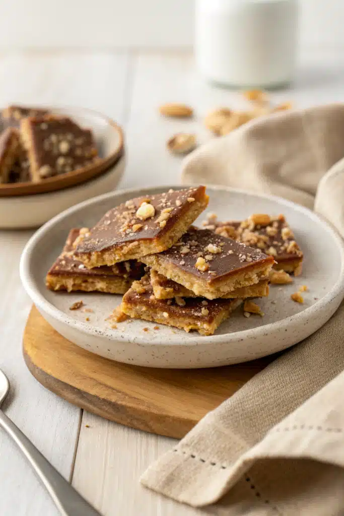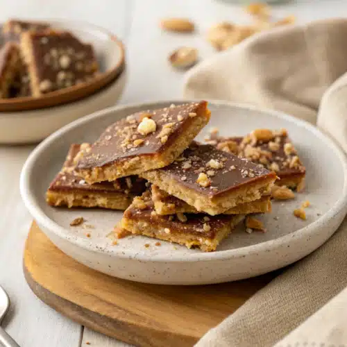 Graham Cracker Toffee shines on its own, but pairing it enhances the experience. Serve slices alongside a strong cup of black coffee or espresso for a balanced, sophisticated snack. Over vanilla bean ice cream? Absolutely—the toffee cuts through the richness beautifully. It also pairs wonderfully with warm apple cider during fall gatherings or spiked with bourbon for a grown-up twist. For a festive touch, wrap individual bars in gold foil and tie with ribbon for elegant homemade gifts. And don’t forget to store leftovers in an airtight container so you always have a sweet surprise waiting!