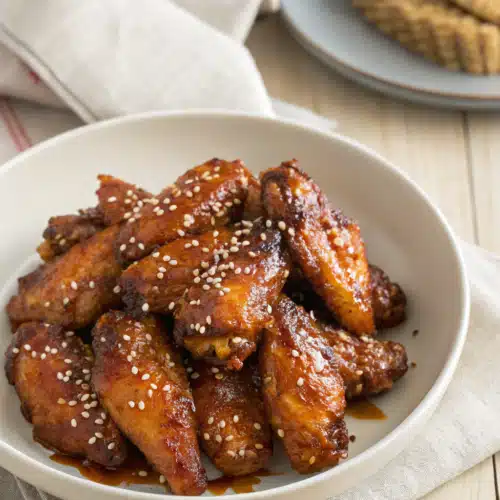 Honey sriracha wings are what happens when sweet meets heat in the best possible way. Think of them as the lovechild of classic sticky Asian-inspired glaze and your favorite American appetizer. The base is always crispy baked (or fried) chicken wings, but instead of buffalo sauce or plain BBQ, they’re tossed in a glossy, caramelized coating made from honey, sriracha, soy sauce, garlic, and a few secret touches that elevate them from “pretty good” to “I-can’t-stop-eating-these.” The honey adds richness and helps the sauce cling to every nook and cranny, while the sriracha brings a bright, garlicky kick that doesn’t linger too long. It’s the kind of dish that feels fancy but starts with a bag of frozen wings and pantry staples—making it perfect for weeknights and weekend hangs alike.
