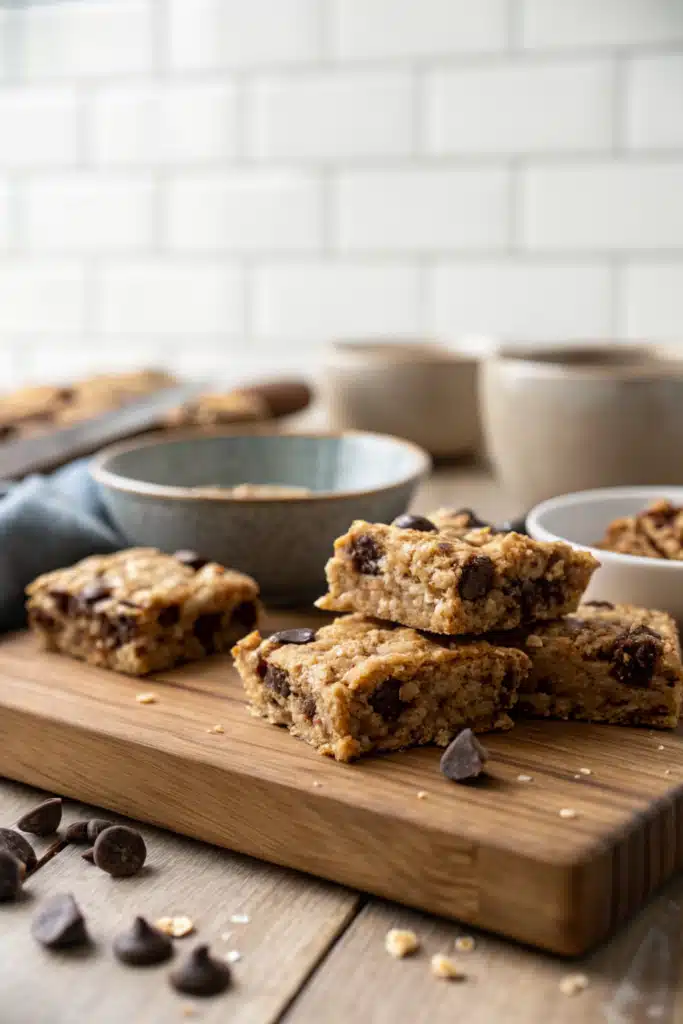 Transfer the dough into your prepared pan and press firmly into an even layer using a spatula or the back of a measuring cup. Bake for 30–35 minutes, or until the edges are lightly golden and a toothpick inserted near the center comes out mostly clean (a few moist clumps are okay). Don’t overbake or your bars will become hard.