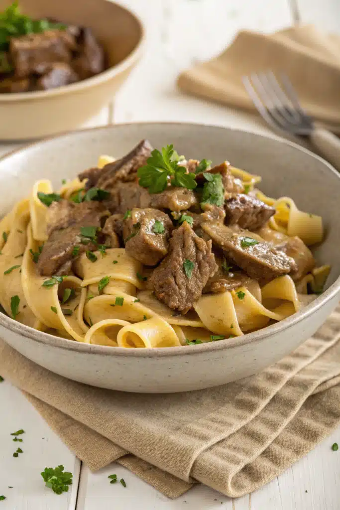 There’s something so comforting about the rich, creamy sauce and tender beef of a classic beef stroganoff. But let me be honest—making it the traditional way means standing over the stove for hours, stirring constantly, and hoping your mushrooms don’t burn. That’s where this slow cooker beef stroganoff comes in. It delivers all that beloved flavor with zero stress. Just sear the meat, throw everything into your slow cooker, and let it do the work while you relax. When dinner time rolls around, you’ll have a silky, savory dish that tastes like you spent all day in the kitchen—even if you didn’t lift a finger.