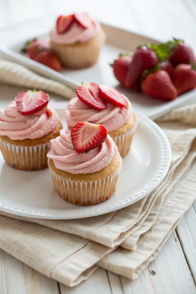 For the best results, always use fresh, ripe strawberries—they make all the difference in flavor. Avoid overmixing the batter, as this can lead to tough cupcakes; a gentle fold is key. If you don’t have paper liners, lightly grease the cups with butter and flour for easy release. To boost the strawberry flavor, add a teaspoon of lemon zest to the batter—it brightens everything up! And remember, cooling completely before frosting prevents melting. If your frosting is too thick, thin it with a splash of milk; if too runny, add a bit more powdered sugar.