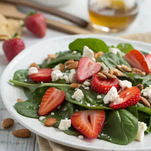 This Strawberry Spinach Salad isn’t just another pretty plate—it’s a flavor-packed experience that feels like a warm hug from Mother Nature. Every forkful brings a burst of sweetness, creaminess, and crunch that dances on your tongue. Whether you’re new to salads or a seasoned pro, this recipe invites creativity and joy into your kitchen. I hope it becomes your go-to for picnics, date nights, or lazy Sunday lunches. Remember: life’s too short for boring greens! So grab those strawberries, whip up that dressing, and savor every moment. Happy eating—and may your bowls always overflow with goodness.