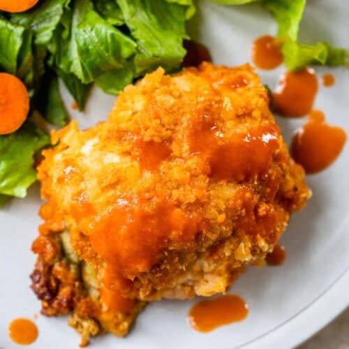 Another reason this recipe wins? Flexibility! Want less spice? Cut back on the hot sauce. Gluten-free? Swap in panko. Not a mayo fan? Try Greek yogurt instead. Even the cheese can be adjusted—no Laughing Cow on hand? Cream cheese works just fine. And since it bakes quickly at 400°F, you’ll have dinner ready in under 45 minutes total. Oh, and don’t skip the buffalo glaze at the end—it ties everything together like nothing else.